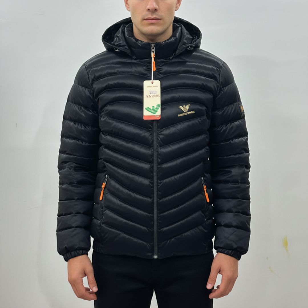 Modern and stylish winter outerwear appearance.